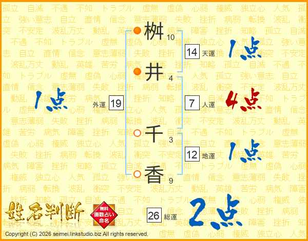 桝井千香さんの総運は26画の2点!