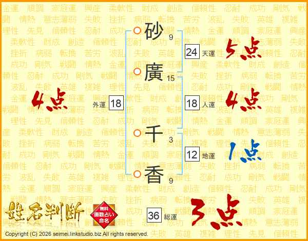砂廣千香さんの外運は18画の4点!