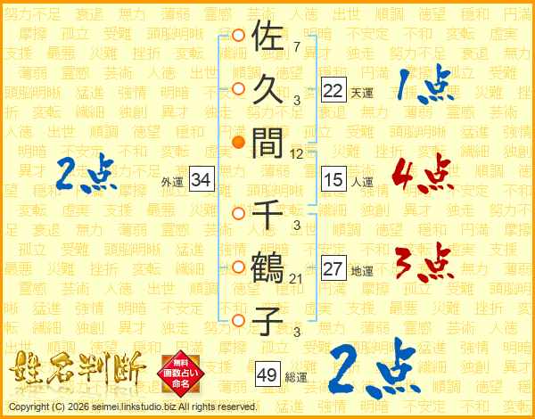 佐久間千鶴子さんの総運は49画の2点!