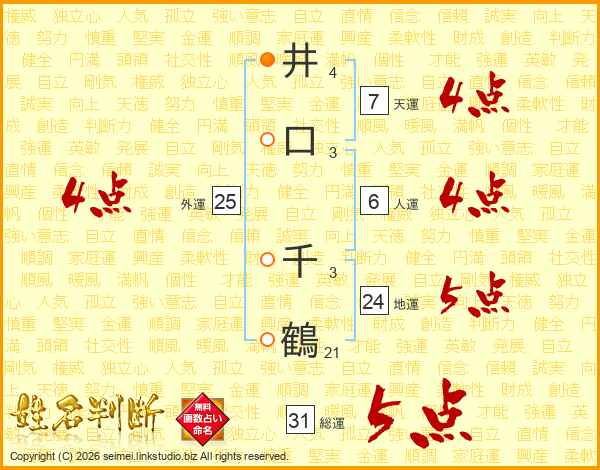 井口千鶴さんの総運は31画の5点!