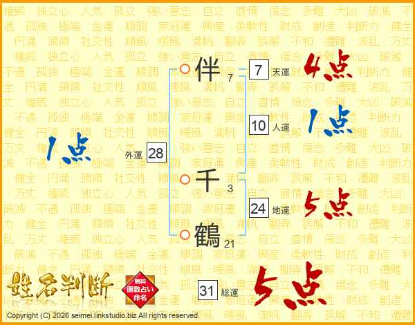 伴千鶴さんの総運は31画の5点!