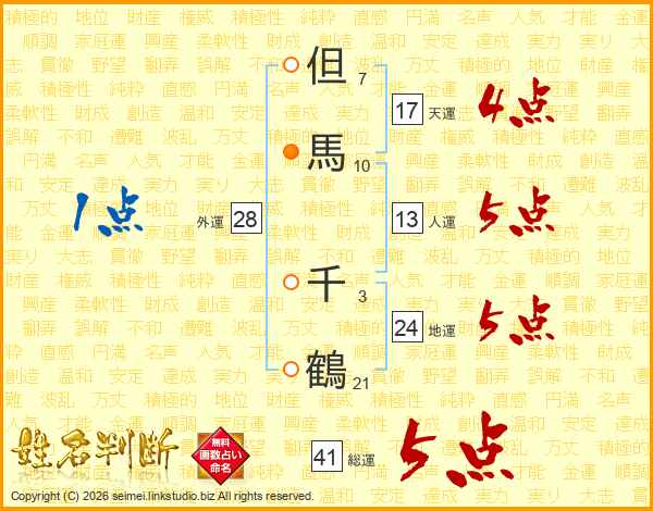 但(7画)馬(10画) 千(3画)鶴(21画)