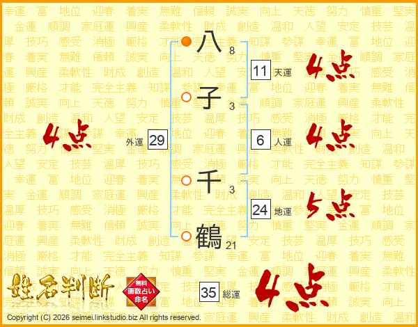 八子千鶴さんの総運は35画の4点!