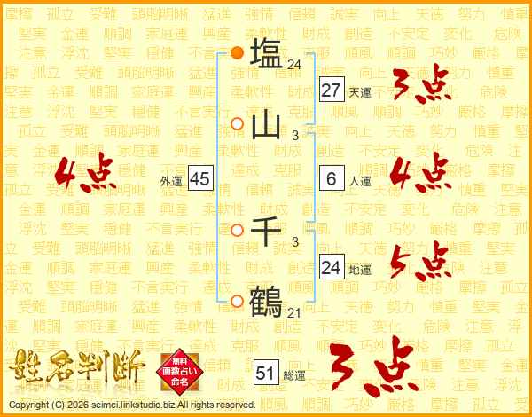 塩山千鶴さんの天運は27画の3点!