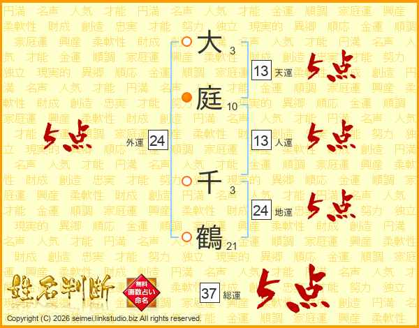 大庭千鶴さんの総運は37画の5点!