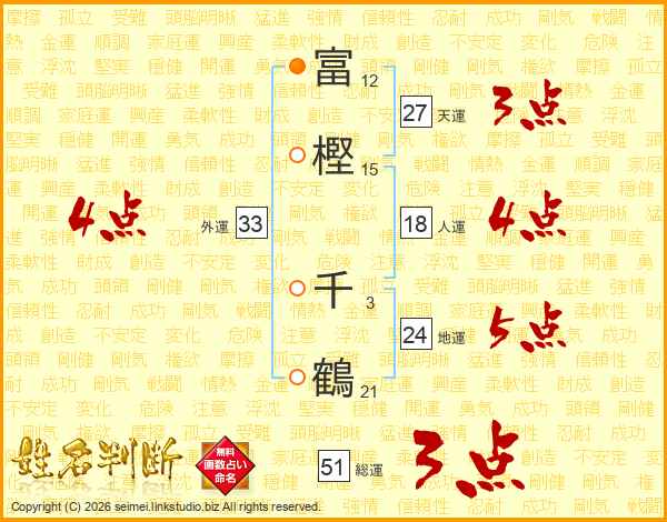 富樫千鶴さんの外運は33画の4点!