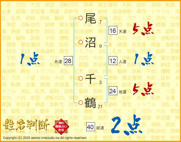 尾沼千鶴さんの総運は40画の2点!