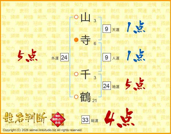 山寺千鶴さんの総運は33画の4点!