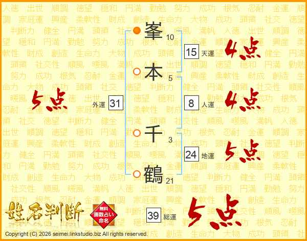 峯本千鶴さんの総運は39画の5点!