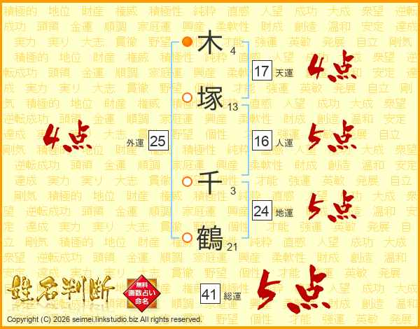 木塚千鶴さんの総運は41画の5点!