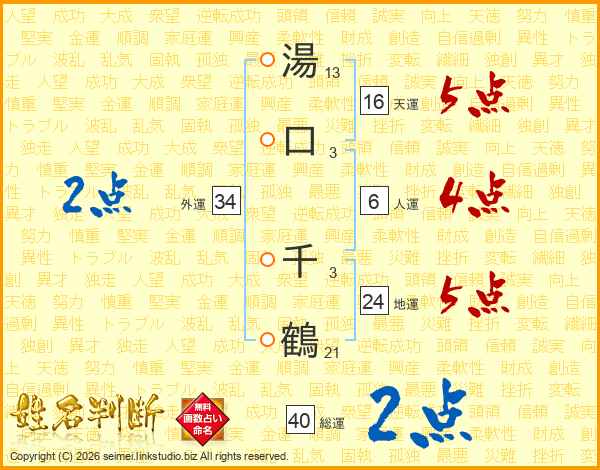 湯口千鶴さんの総運は40画の2点!
