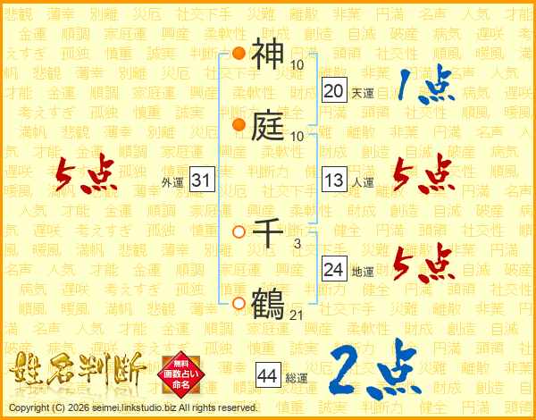 神庭千鶴さんの総運は44画の2点!
