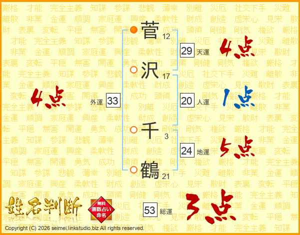菅沢千鶴さんの外運は33画の4点!