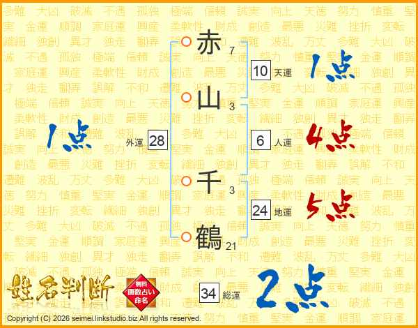 赤山千鶴さんの総運は34画の2点!