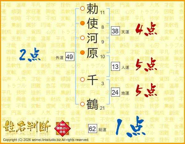 勅使河原千鶴さんの天運は38画の4点!