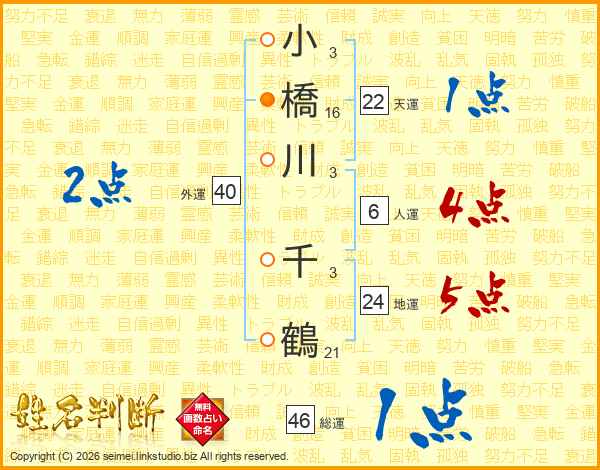 小橋川千鶴さんの総運は46画の1点!