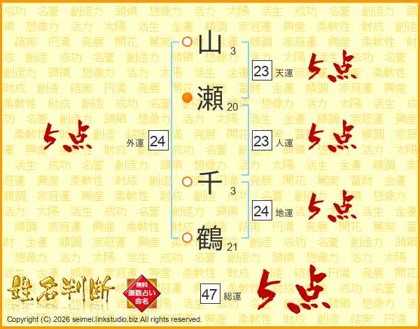 山瀬千鶴さんの総運は47画の5点!