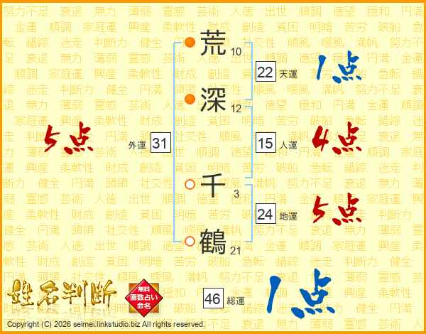 荒深千鶴さんの総運は46画の1点!