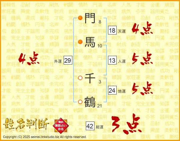 門馬千鶴さんの外運は29画の4点!