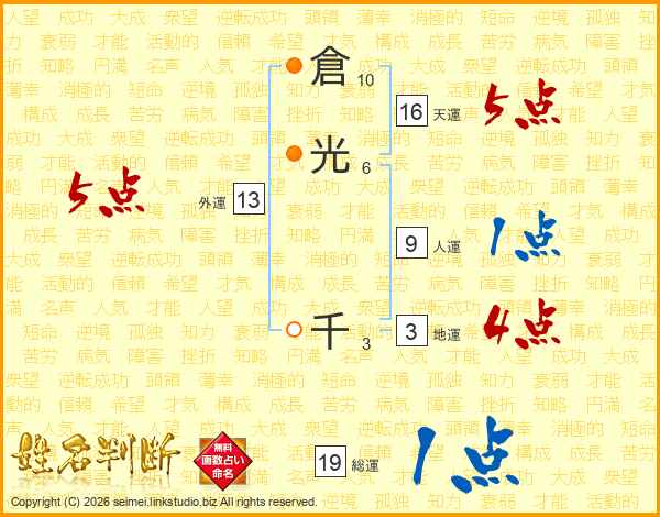 倉光千さんの総運は19画の1点!