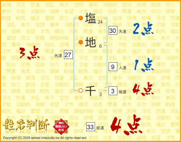 塩(24画)地(6画) 千(3画)