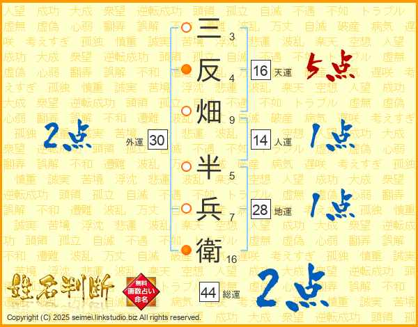 三反畑半兵衛さんの総運は44画の2点!