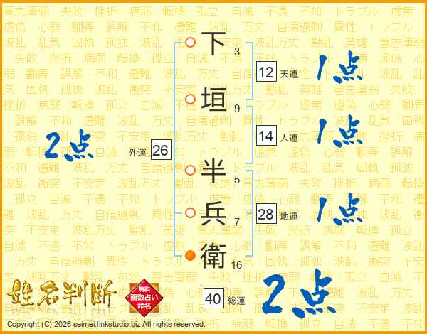 下垣半兵衛さんの総運は40画の2点!