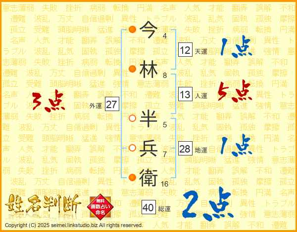 今林半兵衛さんの総運は40画の2点!