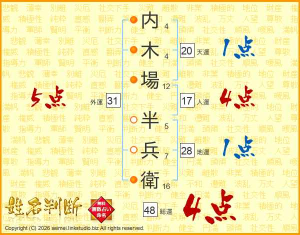 内木場半兵衛さんの外運は31画の5点!
