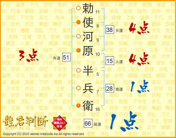 勅使河原半兵衛さんの総運は66画の1点!