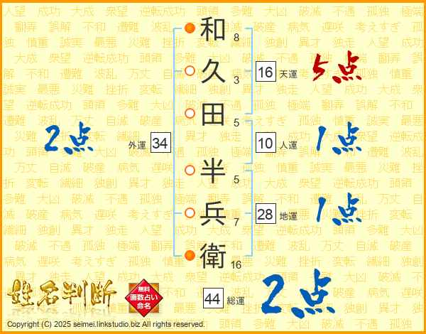 和久田半兵衛さんの総運は44画の2点!