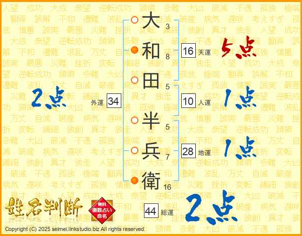 大(3画)和(8画)田(5画) 半(5画)兵(7画)衛(16画)