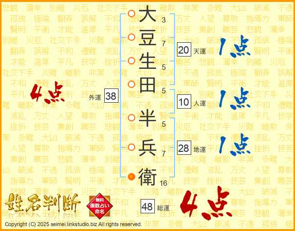 大豆生田半兵衛さんの外運は38画の4点!
