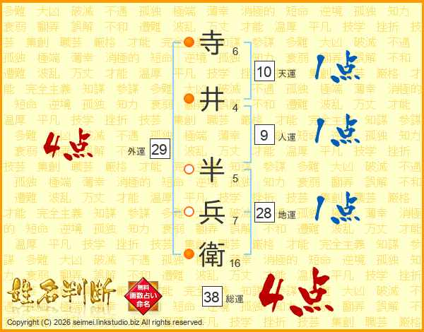 寺井半兵衛さんの総運は38画の4点!
