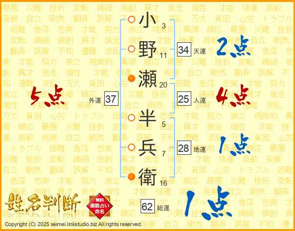 小野瀬半兵衛さんの外運は37画の5点!