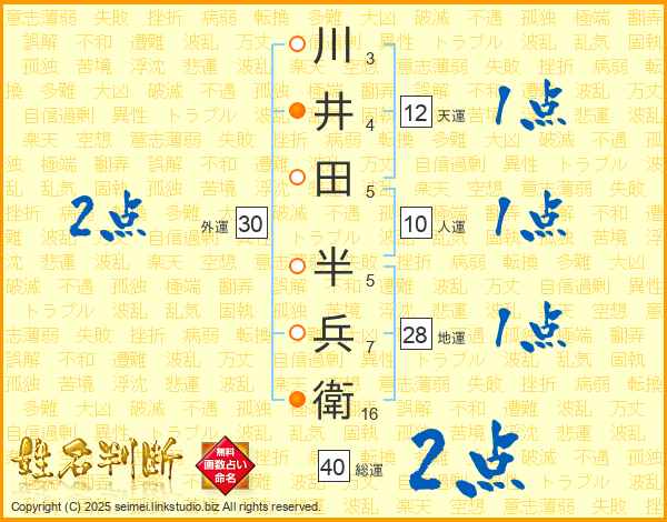 川井田半兵衛さんの総運は40画の2点!