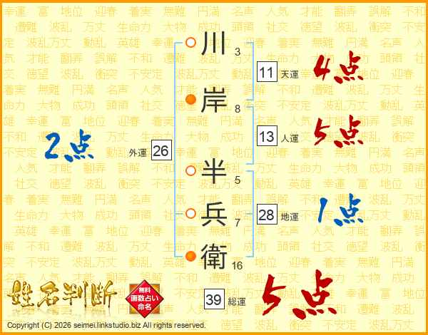 川岸半兵衛さんの総運は39画の5点!