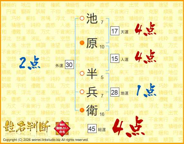 池(7画)原(10画) 半(5画)兵(7画)衛(16画)