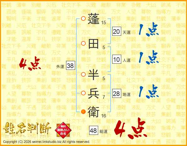 蓬田半兵衛さんの総運は48画の4点!