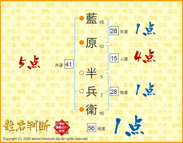 藍(18画)原(10画) 半(5画)兵(7画)衛(16画)