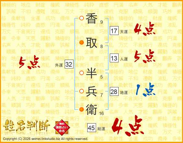 香取半兵衛さんの総運は45画の4点!