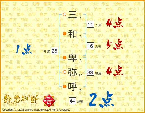 三和卑弥呼さんの地運は33画の4点!