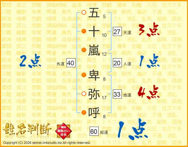 五十嵐卑弥呼さんの総運は60画の1点!