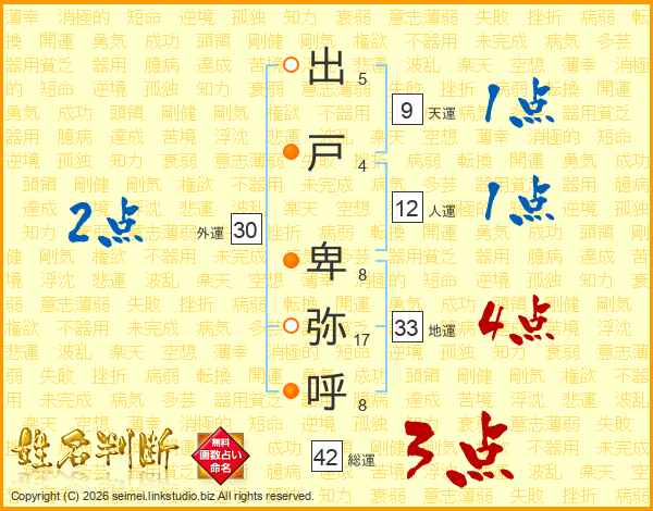 出戸卑弥呼さんの外運は30画の2点!