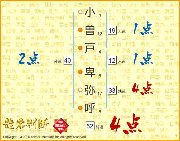 小曽戸卑弥呼さんの総運は52画の4点!