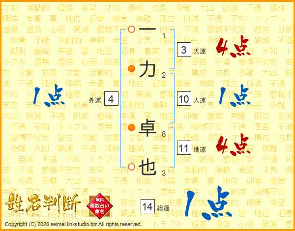 一力卓也さんの総運は14画の1点!