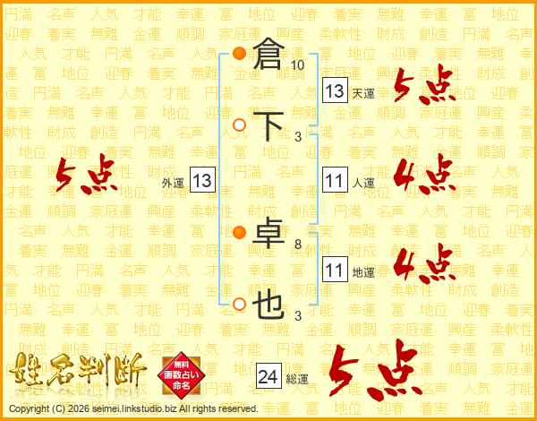 倉下卓也さんの総運は24画の5点!