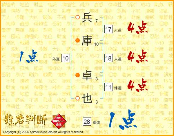 兵庫卓也さんの天運は17画の4点!