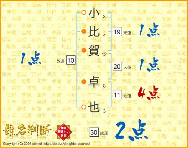 小比賀卓也さんの地運は11画の4点!