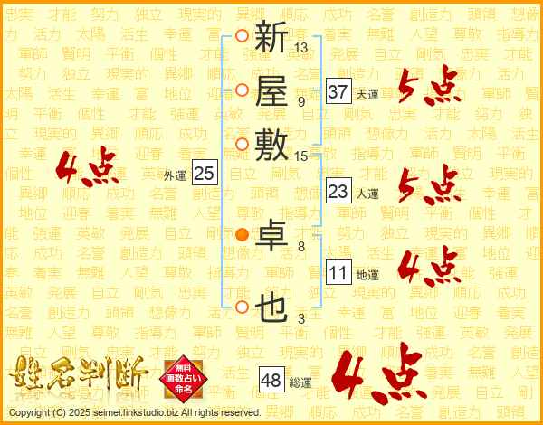 新屋敷卓也さんの天運は37画の5点!